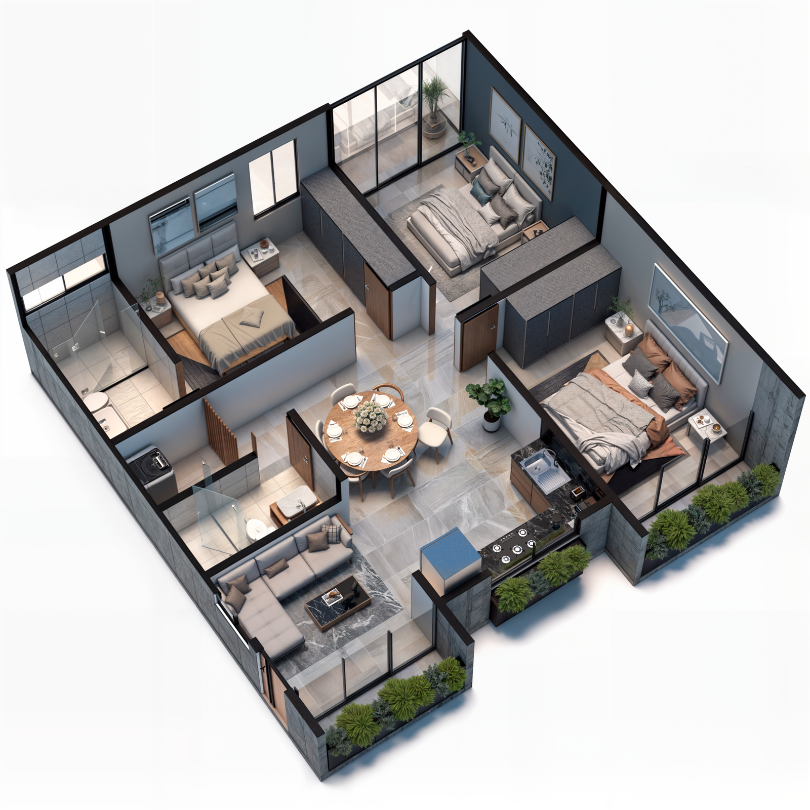 Los Renders de plantas permiten visualizar la distribución de los espacios, ofreciendo una vista amplia del espacio completo
