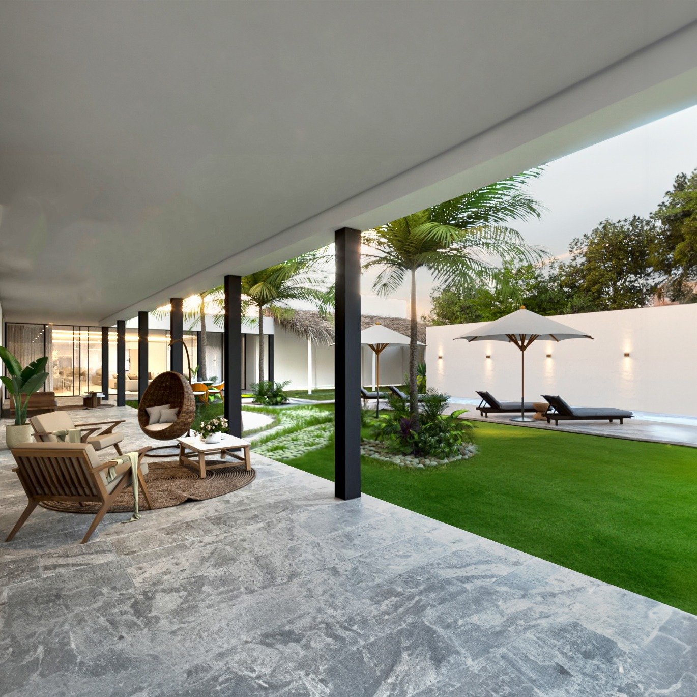 Ejemplo: Un render de fachada y cinco renders interiores o un video por fachada, sala, comedor, cocina, jardín y terraza.