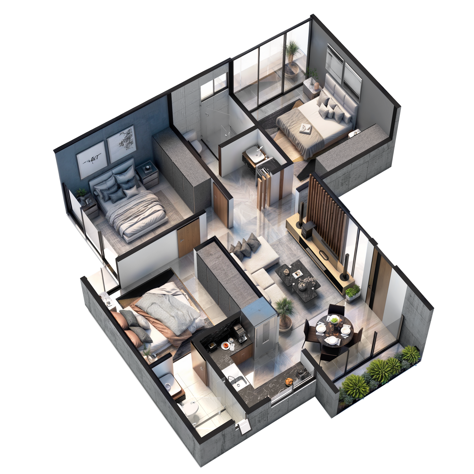 Los Renders de plantas permiten visualizar la distribución de los espacios, ofreciendo una vista amplia del espacio completo
